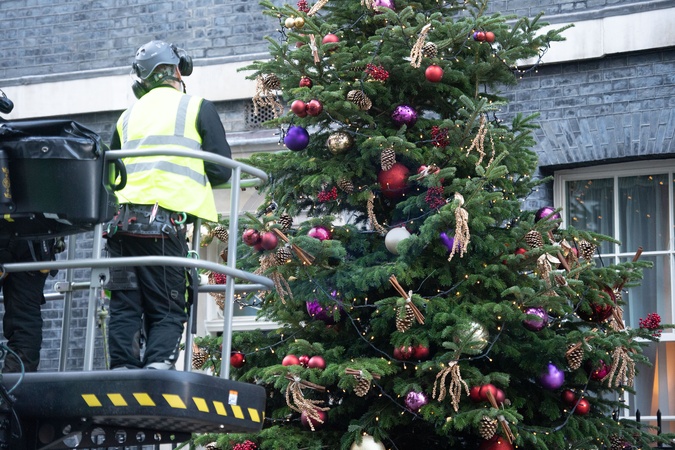 Downing Street Christmas Tree Installed - Friday 24 November 2023 - London