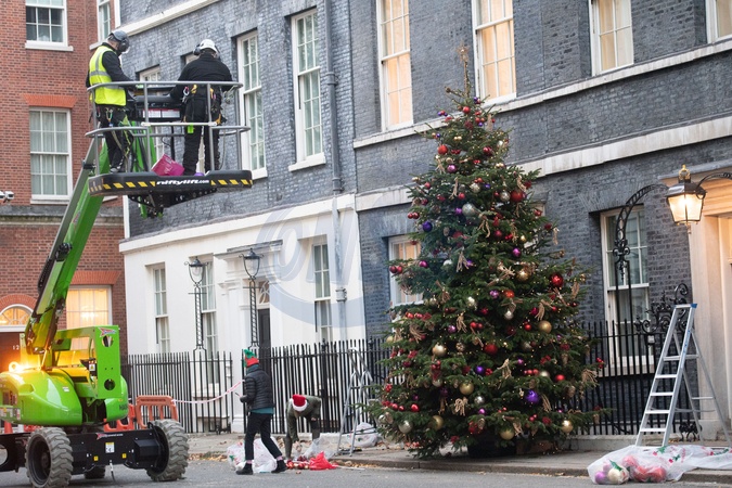 Downing Street Christmas Tree Installed - Friday 24 November 2023 - London