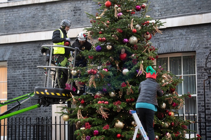 Workers install the Christmas tree in Downing Street in London, England, UK on Friday 24 November, 2023., Credit:Justin Ng / Avalon