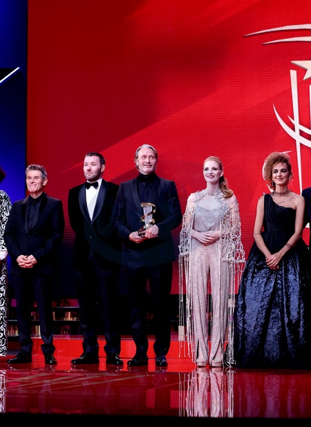 Willem Dafoe, Joel Edgerton, Mads Mikkelsen, Jessica Chastain et Leïla Slimani lors de la cérémonie d'ouverture, de l'hommage à Mads Mikkelsen et de la projection du film "Hit Man"lpour le 20ème Festival International du Film de Marrakech, Maroc, le 24 novembre 2023. © Dominique Jacovides/Bestimage Celebs attending the opening ceremony and screening of "Hit Man" during the 20th Marrakech International Film Festival on November 24, 2023 in Marrakech, Morocco.