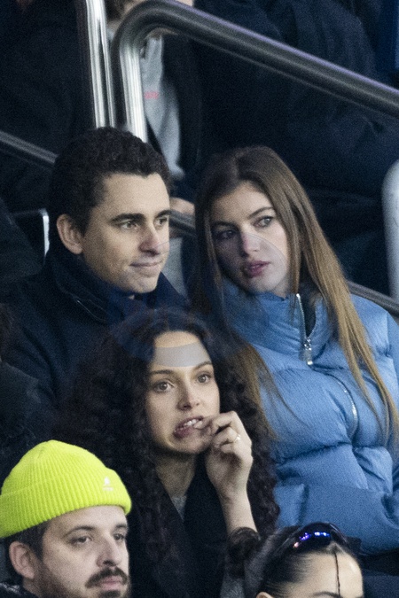 Dimitri Varsano et sa compagne Valery Kaufman dans les tribunes lors du match de Ligue 1 Uber Eats "PSG - Monaco (5-2)" au Parc Des Princes, le 24 novembre 2023. © Cyril Moreau/Bestimage Celebrities in the stands during the match of Ligue 1 Uber Eats "PSG - Monaco (5-2)" at the Parc des Princes. Paris, November 24th, 2023.
