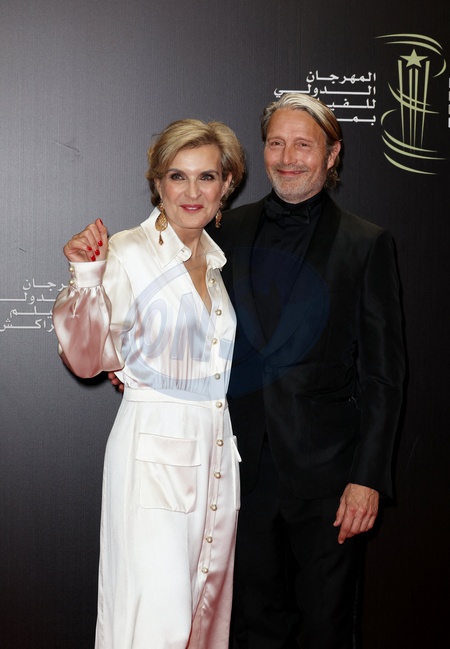 Mélita Toscan du Plantier et Mads Mikkelsen au photocall de la cérémonie d'ouverture et de la projection du film "Hit Man" lors du 20ème Festival International du Film de Marrakech, Maroc, le 24 novembre 2023. © Dominique Jacovides/Bestimage Celebs attending the opening ceremony and screening of "Hit Man" during the 20th Marrakech International Film Festival on November 24, 2023 in Marrakech, Morocco.