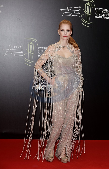 Jessica Chastain au photocall de la cérémonie d'ouverture et de la projection du film "Hit Man" lors du 20ème Festival International du Film de Marrakech, Maroc, le 24 novembre 2023. © Dominique Jacovides/Bestimage Celebs attending the opening ceremony and screening of "Hit Man" during the 20th Marrakech International Film Festival on November 24, 2023 in Marrakech, Morocco.