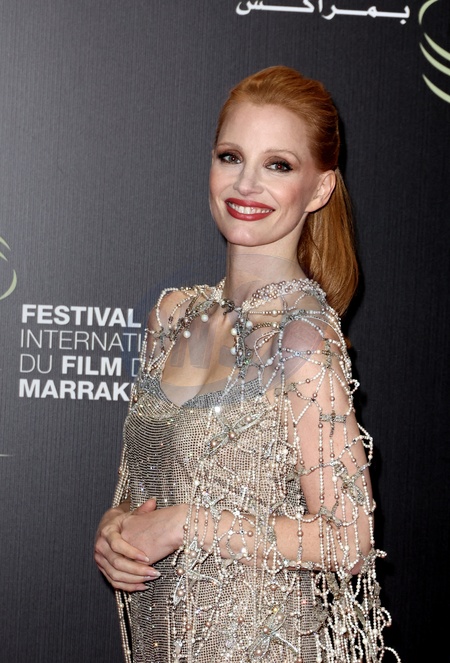 Jessica Chastain au photocall de la cérémonie d'ouverture et de la projection du film "Hit Man" lors du 20ème Festival International du Film de Marrakech, Maroc, le 24 novembre 2023. © Dominique Jacovides/Bestimage Celebs attending the opening ceremony and screening of "Hit Man" during the 20th Marrakech International Film Festival on November 24, 2023 in Marrakech, Morocco.