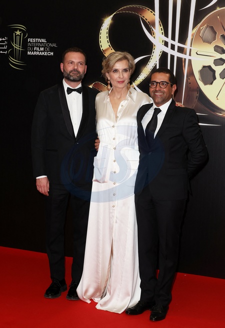 Remi Bonhomme, Mélita Toscan du Plantier, Ali Hajji au photocall de la cérémonie d'ouverture et de la projection du film "Hit Man" lors du 20ème Festival International du Film de Marrakech, Maroc, le 24 novembre 2023. © Dominique Jacovides/Bestimage Celebs attending the opening ceremony and screening of "Hit Man" during the 20th Marrakech International Film Festival on November 24, 2023 in Marrakech, Morocco.