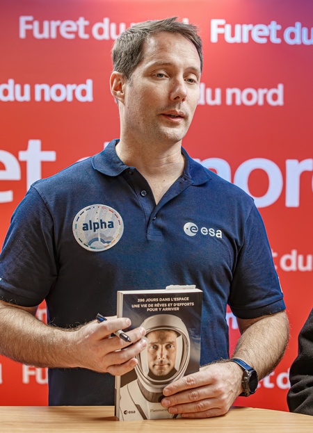 Thomas Pesque astronauta podpisuje swoja ksiazke Moje życie bez grawitacji