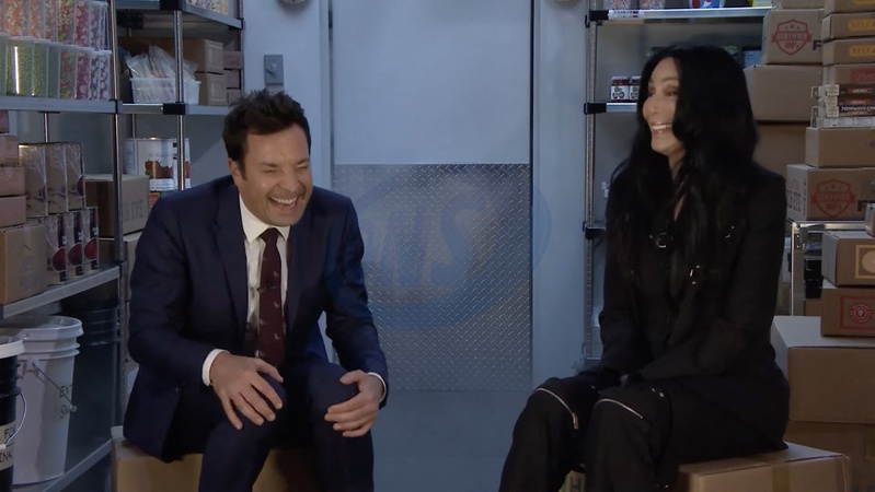 Pictures MUST credit: NBC Superstar singer Cher stayed cool on a TV chat show — by enjoying a giant frozen hot chocolate dessert. The 77-year-old I Believe veteran hit maker wore all black including fingerless gloves for her appearance as a guest of Jimmy Fallon. She was there to plug her new Christmas album. Fallon asked her what she likes to do when she comes to New York where the chat show is filmed. She revealed a restaurant called Serendipity 3 which is renowned for its desserts which included giant ice cream sundaes. She added:” I've been going there since I was 19. It's one of my favourite spots.”
