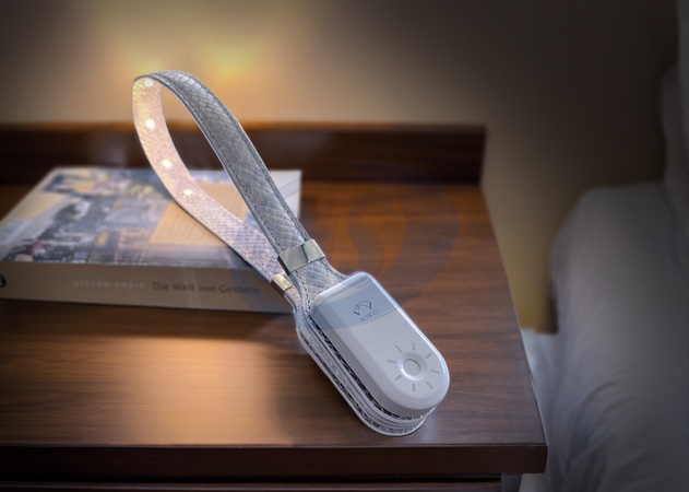Pictures MUST credit: Bowio A unique reading light is ready to brighten up the pages of books by forming an illuminated arch from front to back cover. The Bowio Book Light is claimed to cast the perfect glow across every page. The makers also say it won't disturb a partner if the user is reading in bed. It uses six LED lights inserted into the real or vegan leather strap that connects front and back of both hard and soft cover tomes. The strap is attached through magnets in the spayed endings which clamp the cover between them. The lights themselves can be powered by disposable AAA batteries or plugged in using a USB port which also powers rechargeable batteries. The light has touch controls for adjusting brightness. The device starts from €55 euros for the vegan leather option and has been fully funded on crowdfunding site Kickstarter raising more than €140,000 euros from a €9,000 euros goal with the campaign due to end two days after Christmas. There is also an elite 24K gold gilded leather version for €275 euros.