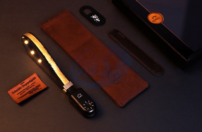 Pictures MUST credit: Bowio A unique reading light is ready to brighten up the pages of books by forming an illuminated arch from front to back cover. The Bowio Book Light is claimed to cast the perfect glow across every page. The makers also say it won't disturb a partner if the user is reading in bed. It uses six LED lights inserted into the real or vegan leather strap that connects front and back of both hard and soft cover tomes. The strap is attached through magnets in the spayed endings which clamp the cover between them. The lights themselves can be powered by disposable AAA batteries or plugged in using a USB port which also powers rechargeable batteries. The light has touch controls for adjusting brightness. The device starts from €55 euros for the vegan leather option and has been fully funded on crowdfunding site Kickstarter raising more than €140,000 euros from a €9,000 euros goal with the campaign due to end two days after Christmas. There is also an elite 24K gold gilded leather version for €275 euros.