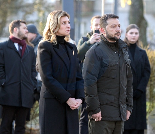 KYIV, UKRAINE - NOVEMBER 25, 2023 - President of Ukraine Volodymyr Zelenskyy and his spouse Olena Zelenska attend the events commemorating the 90th anniversary of the Holodomor of 1932-1933, the genocide of the Ukrainian people, at the National Museum of the Holodomor-Genocide on Holodomor Remembrance Day, Kyiv, capital of Ukraine. On the fourth Saturday of November, Ukraine commemorates the victims of the Holodomor, the 1932–33 man-made famine that killed millions., Credit:Kirill Chubotin / Avalon