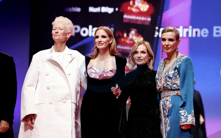 Tilda Swinton, Jessica Chastain, Isabelle Huppert, Mélita Toscan du Plantier à la soirée d'anniversaire pour les 20 ans du Festival International du Film de Marrakech, Maroc, le 25 novembre 2023. © Dominique Jacovides/Bestimage Celebs attending the ceremony for the 20th annual Marrakech International Film Festival on November 25, 2023 in Marrakech, Morocco.