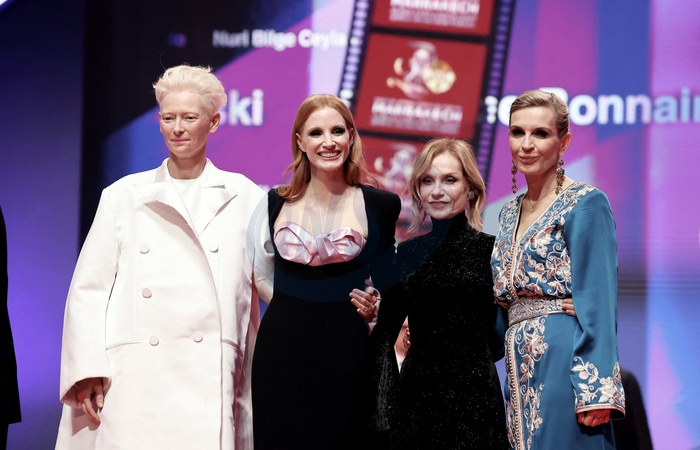 Tilda Swinton, Jessica Chastain, Isabelle Huppert, Mélita Toscan du Plantier à la soirée d'anniversaire pour les 20 ans du Festival International du Film de Marrakech, Maroc, le 25 novembre 2023. © Dominique Jacovides/Bestimage Celebs attending the ceremony for the 20th annual Marrakech International Film Festival on November 25, 2023 in Marrakech, Morocco.