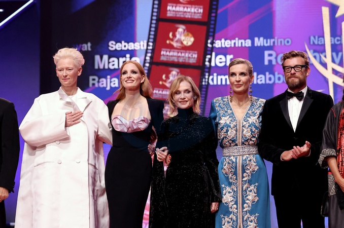 Tilda Swinton, Jessica Chastain, Isabelle Huppert, Mélita Toscan du Plantier, Simon Baker à la soirée d'anniversaire pour les 20 ans du Festival International du Film de Marrakech, Maroc, le 25 novembre 2023. © Dominique Jacovides/Bestimage Celebs attending the ceremony for the 20th annual Marrakech International Film Festival on November 25, 2023 in Marrakech, Morocco.
