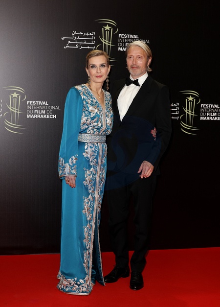 Mélita Tosacan du Plantier, Mads Mikkelsen au photocall de la soirée d'anniversaire pour les 20 ans du Festival International du Film de Marrakech, Maroc, le 25 novembre 2023. © Dominique Jacovides/Bestimage Celebs attending the ceremony for the 20th annual Marrakech International Film Festival on November 25, 2023 in Marrakech, Morocco.