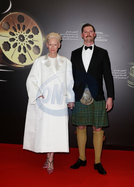 Tilda Swinton et son fils Xavier Swinton Byrne au photocall de la soirée d'anniversaire pour les 20 ans du Festival International du Film de Marrakech, Maroc, le 25 novembre 2023. © Dominique Jacovides/Bestimage Celebs attending the ceremony for the 20th annual Marrakech International Film Festival on November 25, 2023 in Marrakech, Morocco.