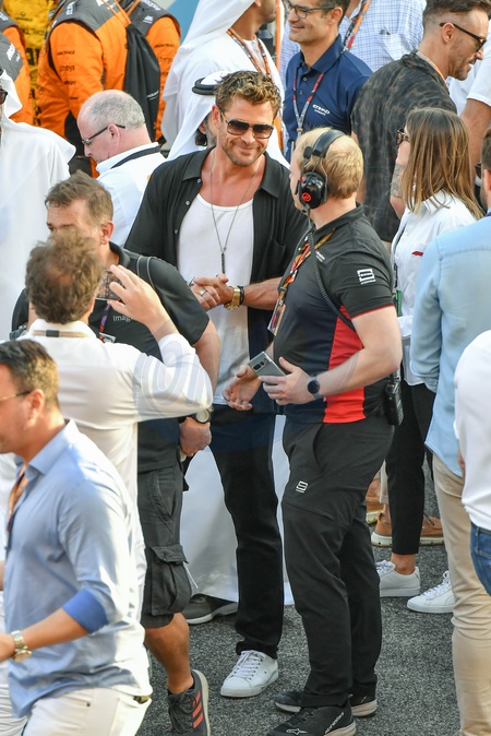 `Chris Hemsworth on the grid prior to the F1 Grand Prix of Abu Dhabi at Yas Marina Circuit on November 26, 2023 in Abu Dhabi, United Arab Emirates, Credit:Jules Annan / Avalon