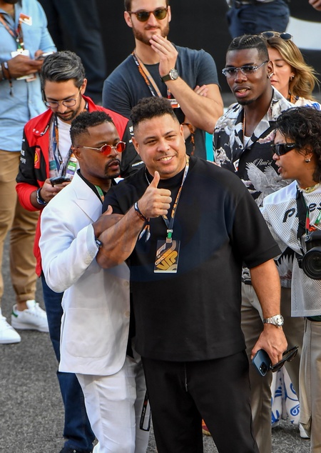 `Ronaldo Nazário, Patrice Evra and Paul Pogba on the grid prior to the F1 Grand Prix of Abu Dhabi at Yas Marina Circuit on November 26, 2023 in Abu Dhabi, United Arab Emirates, Credit:Jules Annan / Avalon