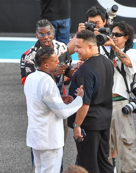 `Ronaldo Nazário, Patrice Evra and Paul Pogba on the grid prior to the F1 Grand Prix of Abu Dhabi at Yas Marina Circuit on November 26, 2023 in Abu Dhabi, United Arab Emirates, Credit:Jules Annan / Avalon
