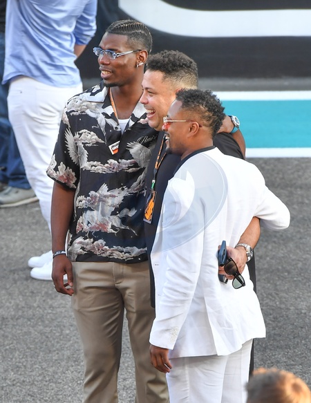 `Ronaldo Nazário, Patrice Evra and Paul Pogba on the grid prior to the F1 Grand Prix of Abu Dhabi at Yas Marina Circuit on November 26, 2023 in Abu Dhabi, United Arab Emirates, Credit:Jules Annan / Avalon