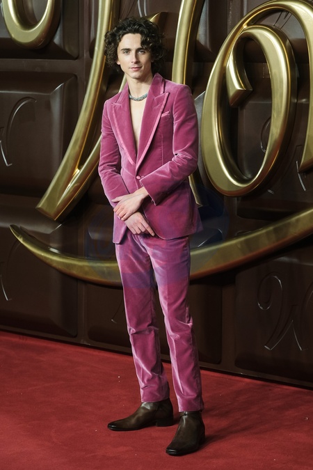 Timothée Chalamet photographed arriving at the World Premiere of Wonka held at Royal Festival Hall in London, UK on 28 November 2023., Credit:Julie Edwards / Avalon