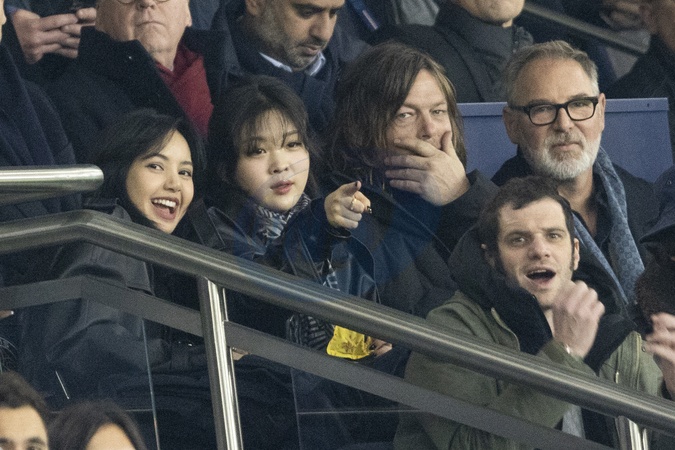 Norman Reedus, Lisa (chanteuse du groupe sud-coréen, Blackpink) - People dans les tribunes du match de Ligue Des Champions 2023, PSG contre Newcastle (1-1) au Parc des Princes à Paris le 28 novembre 2023. © Cyril Moreau/Bestimage People in the stands of the 2023 Champions League match, PSG against Newcastle (1-1) at the Parc des Princes in Paris on November 28, 2023.