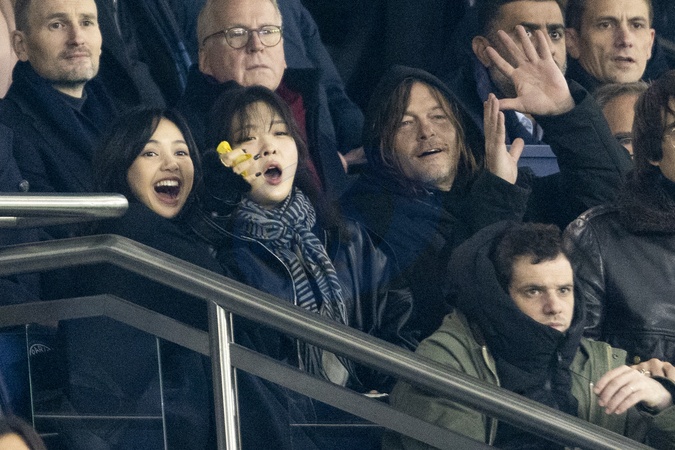 Norman Reedus, Lisa (chanteuse du groupe sud-coréen, Blackpink), Felix Moati - People dans les tribunes du match de Ligue Des Champions 2023, PSG contre Newcastle (1-1) au Parc des Princes à Paris le 28 novembre 2023. © Cyril Moreau/Bestimage People in the stands of the 2023 Champions League match, PSG against Newcastle (1-1) at the Parc des Princes in Paris on November 28, 2023.