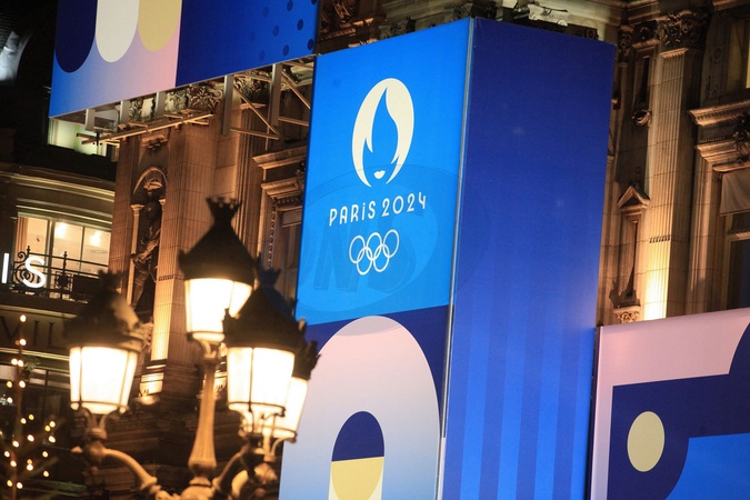 Illustrations de la mairie de Paris décorée aux couleurs des Jeux Olympiques Paris24. Paris, le 28 novembre 2023. Illustrations of the Paris town hall decorated in the colors of the Paris24 Olympic Games. Paris, November 28, 2023.