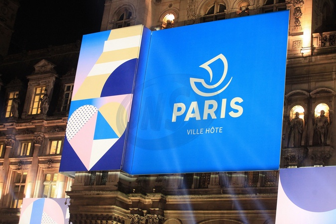Illustrations de la mairie de Paris décorée aux couleurs des Jeux Olympiques Paris24. Paris, le 28 novembre 2023. Illustrations of the Paris town hall decorated in the colors of the Paris24 Olympic Games. Paris, November 28, 2023.
