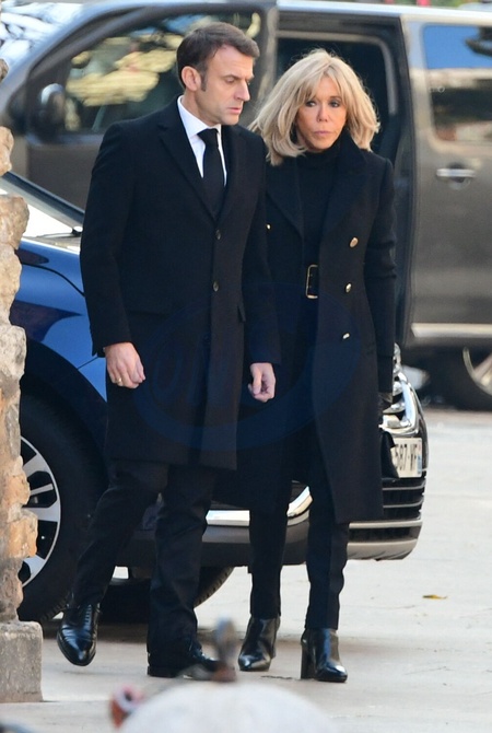 Le président de la République française Emmanuel Macron et la première Dame française Brigitte Macron - Arrivées aux obsèques de Gérard Collomb en la cathédrale Saint-Jean à Lyon le 29 novembre 2023. © Romain Doucelin/Bestimage Arrivals at the funeral of Gérard Collomb at Saint-Jean Cathedral in Lyon on November 29, 2023.