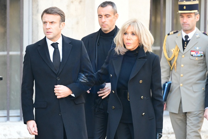 Le président de la République française Emmanuel Macron et la première Dame française Brigitte Macron - Arrivées aux obsèques de Gérard Collomb en la cathédrale Saint-Jean à Lyon le 29 novembre 2023. © Romain Doucelin/Bestimage Arrivals at the funeral of Gérard Collomb at Saint-Jean Cathedral in Lyon on November 29, 2023.