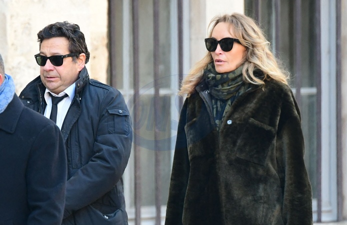 Laurent Gerra et sa femme Christelle Bardet - Arrivées aux obsèques de Gérard Collomb en la cathédrale Saint-Jean à Lyon le 29 novembre 2023. © Romain Doucelin/Bestimage Arrivals at the funeral of Gérard Collomb at Saint-Jean Cathedral in Lyon on November 29, 2023.