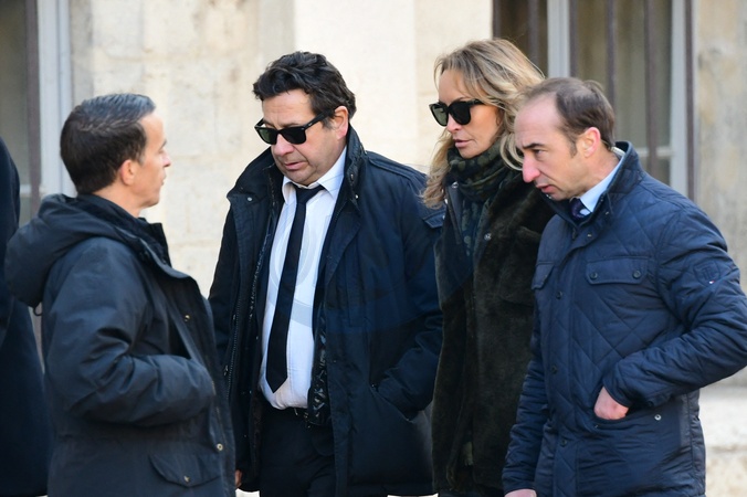 Laurent Gerra et sa femme Christelle Bardet - Arrivées aux obsèques de Gérard Collomb en la cathédrale Saint-Jean à Lyon le 29 novembre 2023. © Romain Doucelin/Bestimage Arrivals at the funeral of Gérard Collomb at Saint-Jean Cathedral in Lyon on November 29, 2023.