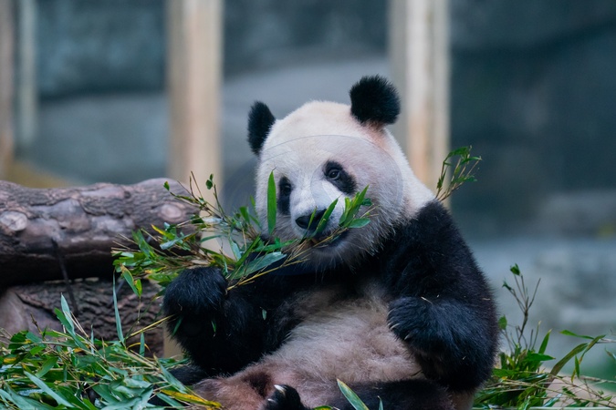 A panda cub has bamboo leaves in a zoo in southwest China's Chongqing Municipality Saturday, Nov. 25, 2023., Credit:LI HONGBO / Avalon