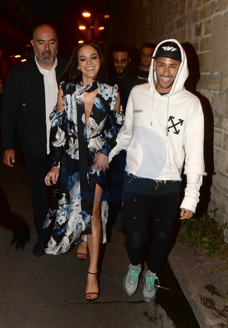 Neymar Jr. et sa compagne Bruna Marquezine à la sortie du défilé Off White "Collection Prêt-à-Porter Printemps/Eté 2019" lors de la Fashion Week de Paris (PFW)