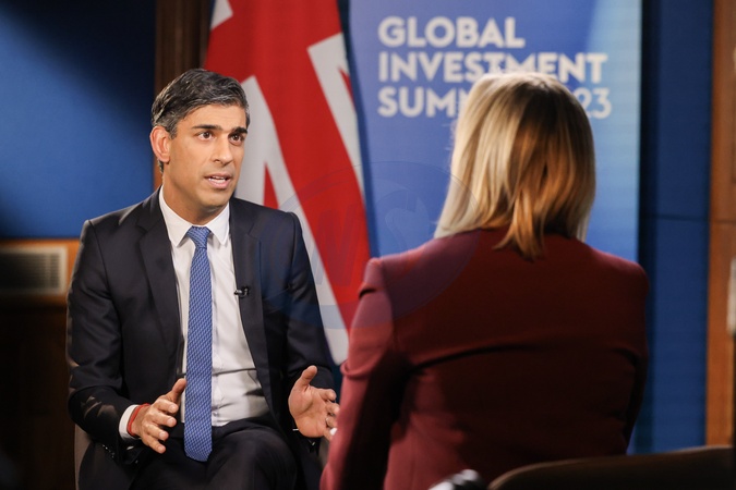 26/11/2023. London, United Kingdom. The Prime Minister, Rishi Sunak is interviewed by Francine Lacqua of Bloomberg television in No9 Downing Street., Credit:Rory Arnold / Avalon
