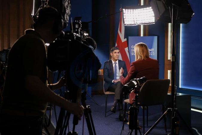 26/11/2023. London, United Kingdom. The Prime Minister, Rishi Sunak is interviewed by Francine Lacqua of Bloomberg television in No9 Downing Street., Credit:Rory Arnold / Avalon