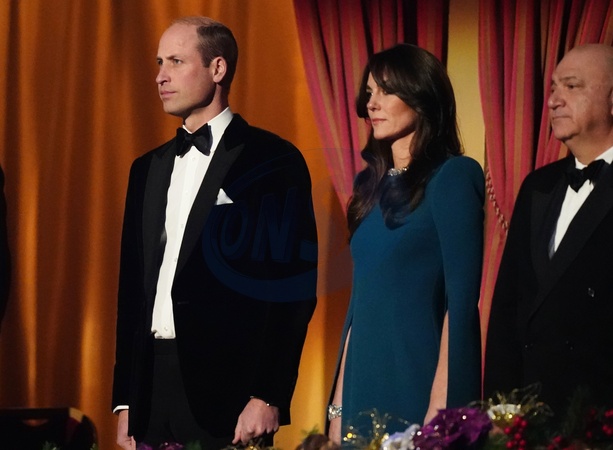 The Prince and Princess of Wales stand for the national anthem during the Royal Variety Performance at the Royal Albert Hall, London., Credit:Aaron Chown / Avalon