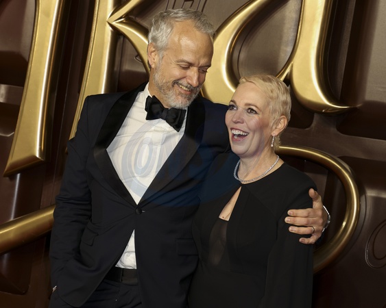Ed Sinclair and Olivia Colman at the Wonka World Premiere at Royal Festival Hall in Waterloo, London, United Kingdom on 28 November 2023., Credit:Cat Morley / Avalon