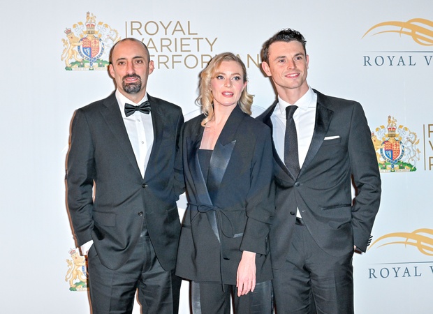 London, UK, 30 November 2023. (L-R) Tom Edden, Carly Anderson and Charlie Stemp attend the Royal Variety Performance being held at the Royal Albert Hall, London, UK., Credit:Lee Floyd / Avalon