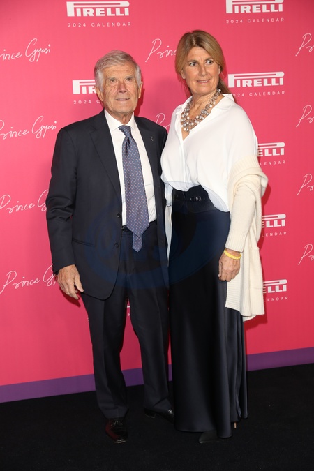 Giacomo Agostini and Maria Agostini attend the gala event to celebrate the unveiling of the 2024 Pirelli Calendar by Prince Gyasi, Credit:RETNA / Avalon