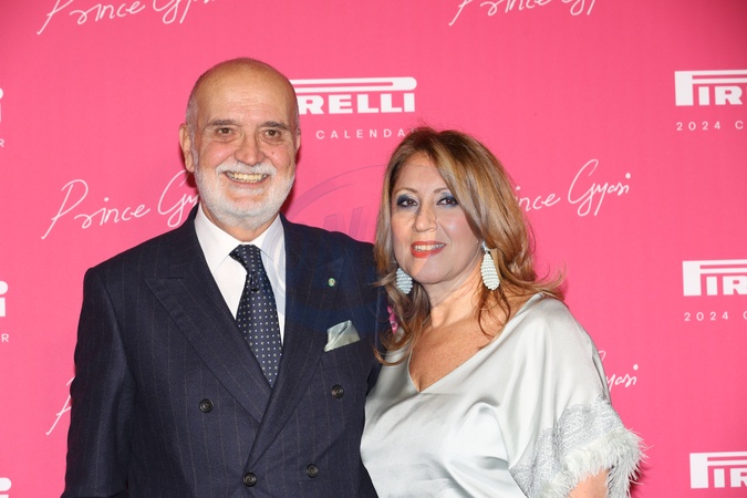 Inigo Lambertini, Ambassador of Italy to the United Kingdom, and Maria Grazia Lambertini attend the gala event to celebrate the unveiling of the 2024 Pirelli Calendar by Prince Gyasi, Credit:RETNA / Avalon