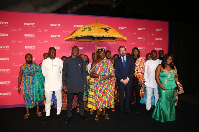 Prince Aimone of Savoy, Duke of Aosta and Duke of Apulia, The Royal Ambassador HRH Oheneba Yaw Otchere, HRH Baafuor Agyei Fosu II, spokesperson on behalf of His Royal Majesty Otumfuo Osei Tutu II, King of Ashanti Kingdom, Ama K. Abebrese and Marco Tronchetti Provera, Pirelli Executive Vice Chairman attend the gala event to celebrate the unveiling of the 2024 Pirelli Calendar by Prince Gyasi, Credit:RETNA / Avalon