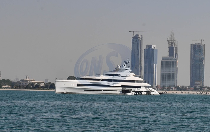 `Superyacht MAR owned by H.H. Sheikh Suroor bin Mohammed Al Nahyan seen off Dubai coast, 1-11-2023, Credit:Jules Annan / Avalon