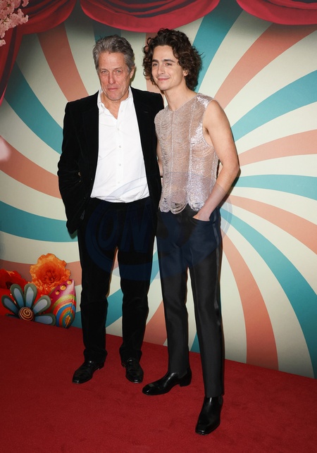 Hugh Grant et Timothée Chalamet à l'avant-première du film "Wonka" à L'UGC Normandie à Paris le 1 decembre 2023. © Coadic Guirec/Bestimage Celebs attend the "Wonka" Premiere at Cinema UCG Normandie on December 01, 2023 in Paris, France.
