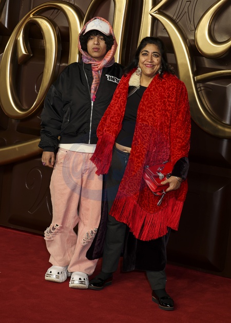 Ronak Berges and Gurinder Chadha at the Wonka World Premiere at Royal Festival Hall in Waterloo, London, United Kingdom on 28 November 2023., Credit:Cat Morley / Avalon