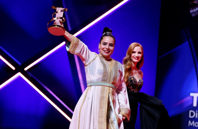 Asmae El Moudir reçoit L'Etoile d'Or pour son film "La mère de tous les mensonges", Jessica Chastain lors de la cérémonie de clôture et de la remise des prix du 20ème Festival International du Film de Marrakech, Maroc, le 2 décembre 2023. © Dominique Jacovides/Bestimage Celebs attend the closing ceremony during the 20th Marrakech International Film Festival in Marrakech, Morocco, on December 2nd, 2023.
