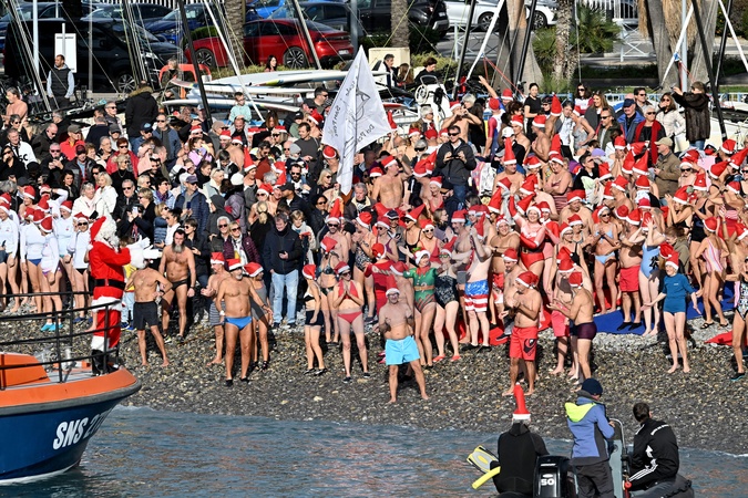 23eme édition du Bain de Noël de Cagnes sur Mer, le 3 décembre 2023. 545 participants se sont baignés dans une mer à 16°C. © Bruno Bebert/Bestimage 23rd edition of the Cagnes-sur-Mer Christmas Bath, on December 3, 2023. 545 participants bathed in a sea at 16°C.