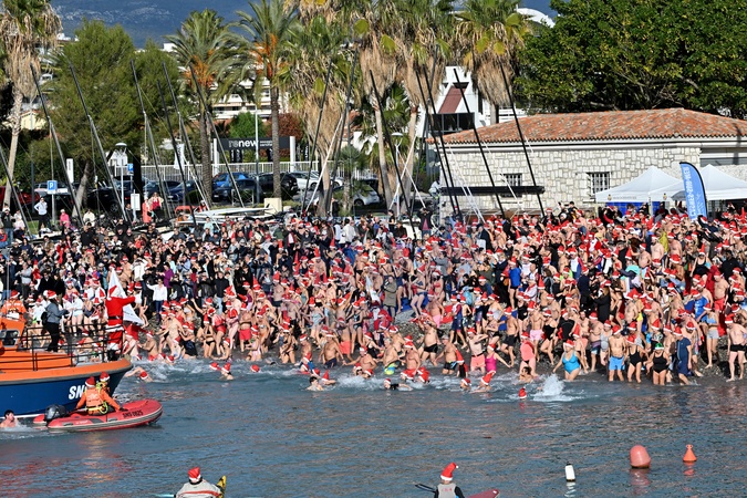 23eme édition du Bain de Noël de Cagnes sur Mer, le 3 décembre 2023. 545 participants se sont baignés dans une mer à 16°C. © Bruno Bebert/Bestimage 23rd edition of the Cagnes-sur-Mer Christmas Bath, on December 3, 2023. 545 participants bathed in a sea at 16°C.