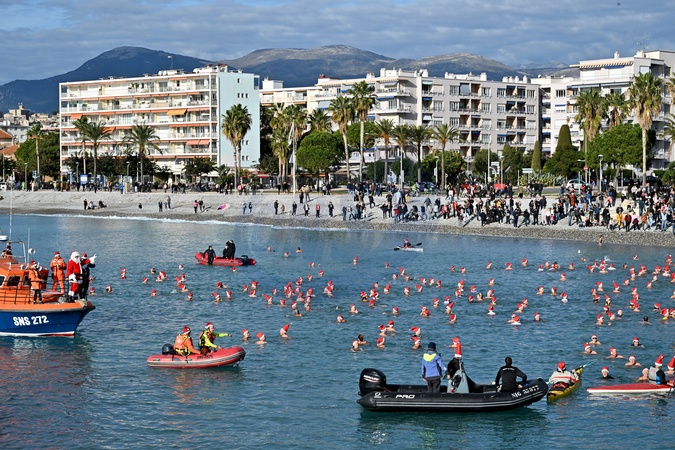 Świąteczna kąpiel w Cagnes-sur-Mer mikolaje