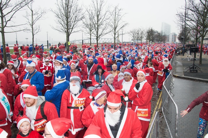 the liverpool Santa Dash, the biggest and longest established Santa Run in the UK., Credit:celebrityphotos uk / Avalon